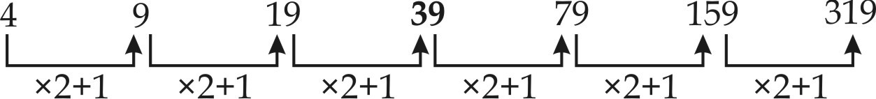 Q12. 4, 9, 19, ?, 79, 159, 319