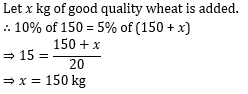 Q12. The wheat sold by a grocer contained 10% low quality wheat. What quantity of good quantity wheat should be added to 150 kg of wheat so that the percentage of low quality wheat becomes 5% ?