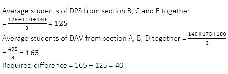 Q18. Find the difference of average number of students of DPS from section B, C and E together and average students of DAV from section A, B and D together.