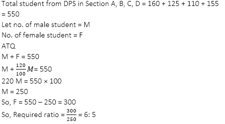 Q20. If in students from DPS in section A, B, C and D together, girl students appeared are 20% more than boy students, then find the ratio of girl students to boy student from DPS in section A, B, C and D together.