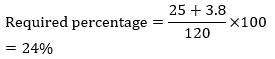 Q11. In a 120 litre mixture of milk and water, water is only 25%. The milkman sold 20 litres of this mixture and then he added 16.2 litres of pure milk and 3.8 litres of pure water in the remaining mixture. What is the percentage of water in the final mixture ?