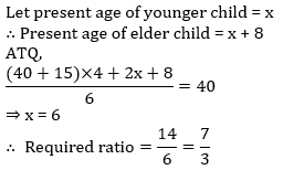 Q15. 15 years ago the average age of a family of four members was 40 years. Two children were born in the span of 15 years. The present average age of the family remained unchanged. Among the two children who were born in between the 15 years, if the older child at present is 8 years more than the younger one, what is the respective ratio between the present age of the older child and the present age of the younger child ?