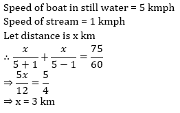 Q13. A man can row at 5 km/hr in still water. If the river is running at 1 km/hr it takes him 75 minutes to row to a place and back. How far is the place?