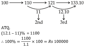 Q7. Uday has deposited certain amount in the bank to earn C.I. at 10% per annum. The difference of the interest on the amount between 3rd and 2nd years is Rs 1,100. What amount has Uday deposited?