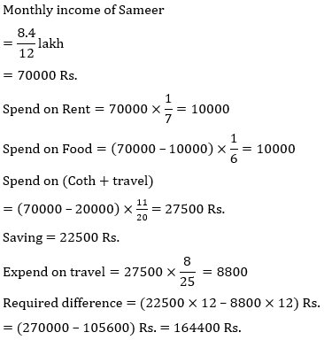Q4. Annually income of Sameer is 8.4 lakh Rs. he spend on Rent,