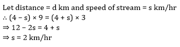 Q6. A boat takes 9 hr to travel a distance upstream and takes 3 hr to travel the same distance downstream. If the speed of the boat in still water is 4 kmph, then what is the speed of the stream?