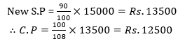 Q1. Manoj sold an article for Rs. 15,000. Had he offered a discount of 10% on the selling price, he would have earned a profit of 8%. What is the cost price?