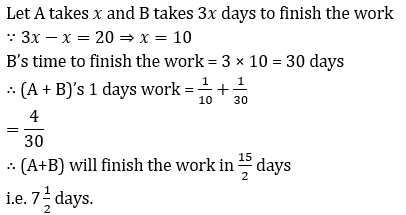 Q6. A is thrice as good a workman as B and therefore is able to finish a job in 20 days less than B. How many days will they take to finish the job working together?