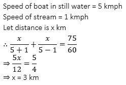 Q13. A man can row at 5 km/hr in still water. If the river is running at 1 km/hr it takes him 75 minutes to row to a place and back. How far is the place?