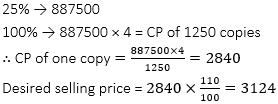 Q14. For an edition of 1250 copies, Binding cost amounts to Rs. 887500, what should be the SP of the one book if publisher desires a profit of 10% ?