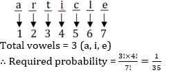 Q15. The letters of the word ‘article’ are arranged at random. Find the probability that the vowels may occupy the even places.