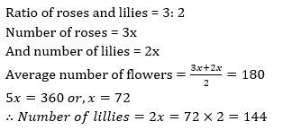 Q14. The ratio of roses and lilies in a garden is 3 : 2 respectively. The average number of roses and lilies is 180. What is the number of lilies in the garden?