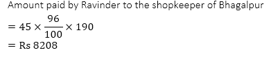 Q19. Ravinder had to purchase 45 kgs. of Cheeku from Bhagalpur. Shopkeeper gave him discount of 4% per kg. What amount did he pay to the shopkeeper after the discount?
