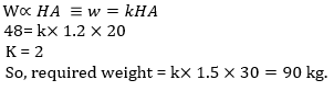 Q11. Weight of a sumo is jointly varies as his height and his age. When height is 1.2 m and age is 20 years, his weight is 48 kg. Find the weight of the sumo when his height is 1.5 metre and age is 30 years: