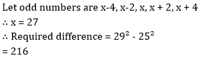 Q15. The average of five consecutive odd numbers is 27. What is difference between squares of second largest number and second smallest number ?