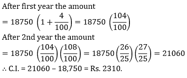 Q14. Find the compound interest on Rs. 18,750 in 2 years the rate of interest being 4% for the first year and 8% for the second year.