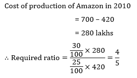 Q12.If total cost of production of Amazon and Flipcart in year 2010 is 700 lakhs and also the cost of production of Flipcart in 2010 is same as that of Amazon in 2011 then what is the ratio of profit of Amazon and Flipcart in the year 2010?