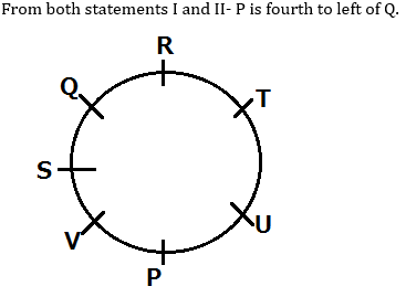 Q9. What is the position of P with respect to Q(Counted from left of Q) in a round table seating arrangement if all of them are facing towards the center of table? I. Seven persons P, Q, R, S, T, U and V sat around a round table where P sat between U and V, S sat adjacent to V and R did not sit adjacent to S. II. T sat on the immediate right of U.