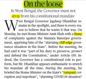 Example:- West Bengal has been slow in its responses. Political violence, gruesome crimes