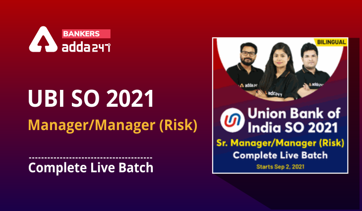 The Union Bank bank of India has announced 347 vacancies for the recruitment of Union Bank Of India SO 2021 on the official website of UBI i.e. www. unionbankofindia.co.in on 12th August 2021. Some candidates appearing for this examination are facing problems in reasoning, quantitative aptitude, English, and risk management section, and are unable to score better marks in any section. To help all those candidates Adda247 has launched UBI SO 2021- Sr. Manager/Manager (Risk): Complete Live Batch which will uplift your preparations for the upcoming examination. Know more about this examination from the information given below: