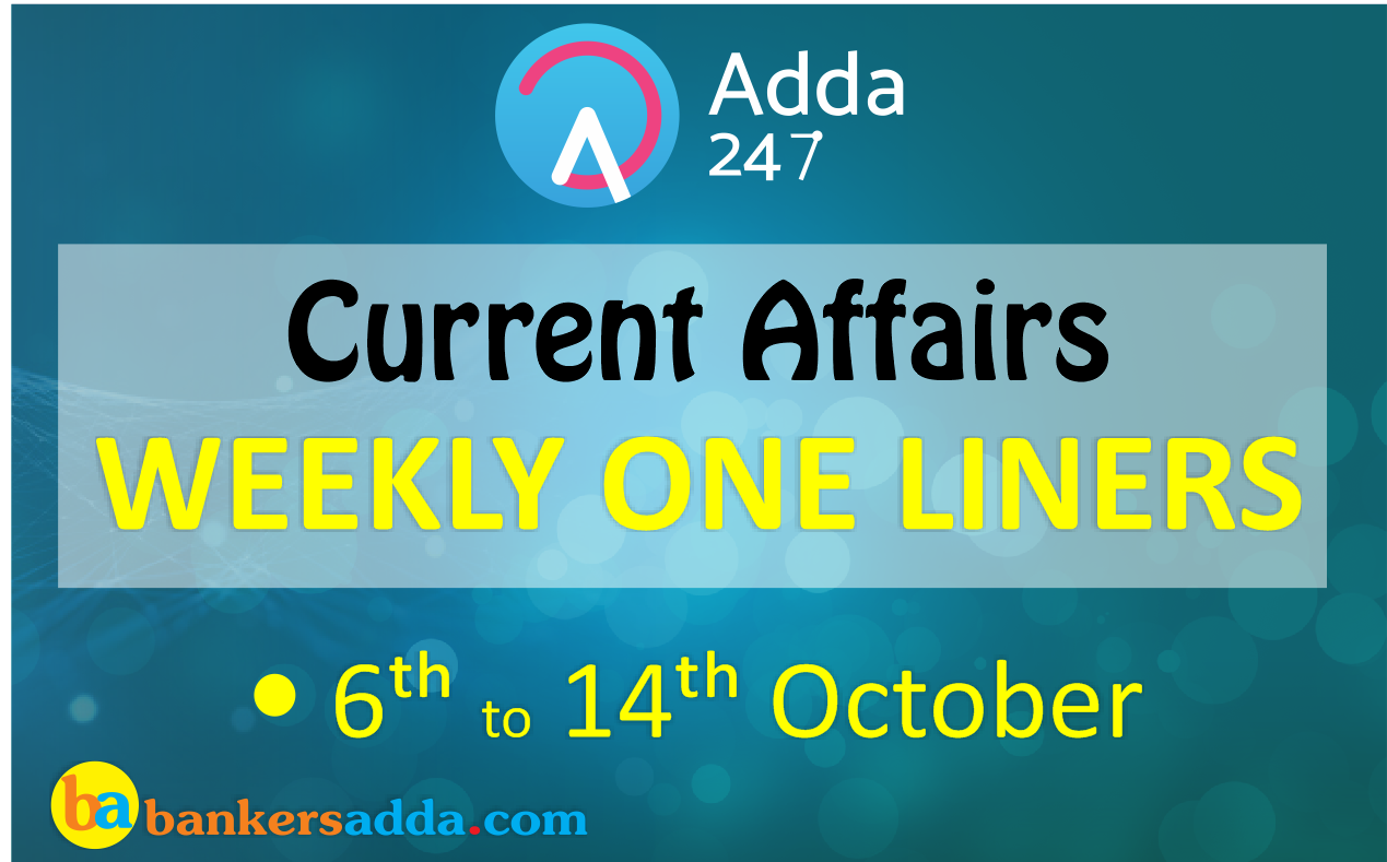 Adda247 bring to you a compact PDF of Current Affairs One-Liners for upcoming Banking Exams 2018 covering the latest news from 6th to 14th October. Now you can download the weekly pdf and learn important current affairs hassle free!!